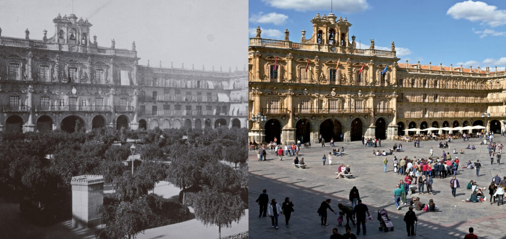 Imagen de la Plaza Mayor: «Salamanca, ayer y hoy, 150 años de diferencia»